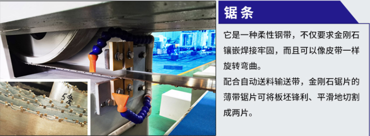 1. 本机器是生产大理石复合板的基础设备,采用带锯条(串珠绳)将板材对剖或者锯切成薄片。