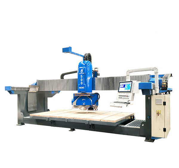 HKNC-500+ with 5 axis interpolation controlled, is a multifunctional CNC stone cutting, shaping and engraving machine built with the needs of workshops in mind, combining simplicity with maximum versatility for a minimum investment budget. It is popularly used for cutting slabs and blocks of both natural and synthetic stone, and ceramic.